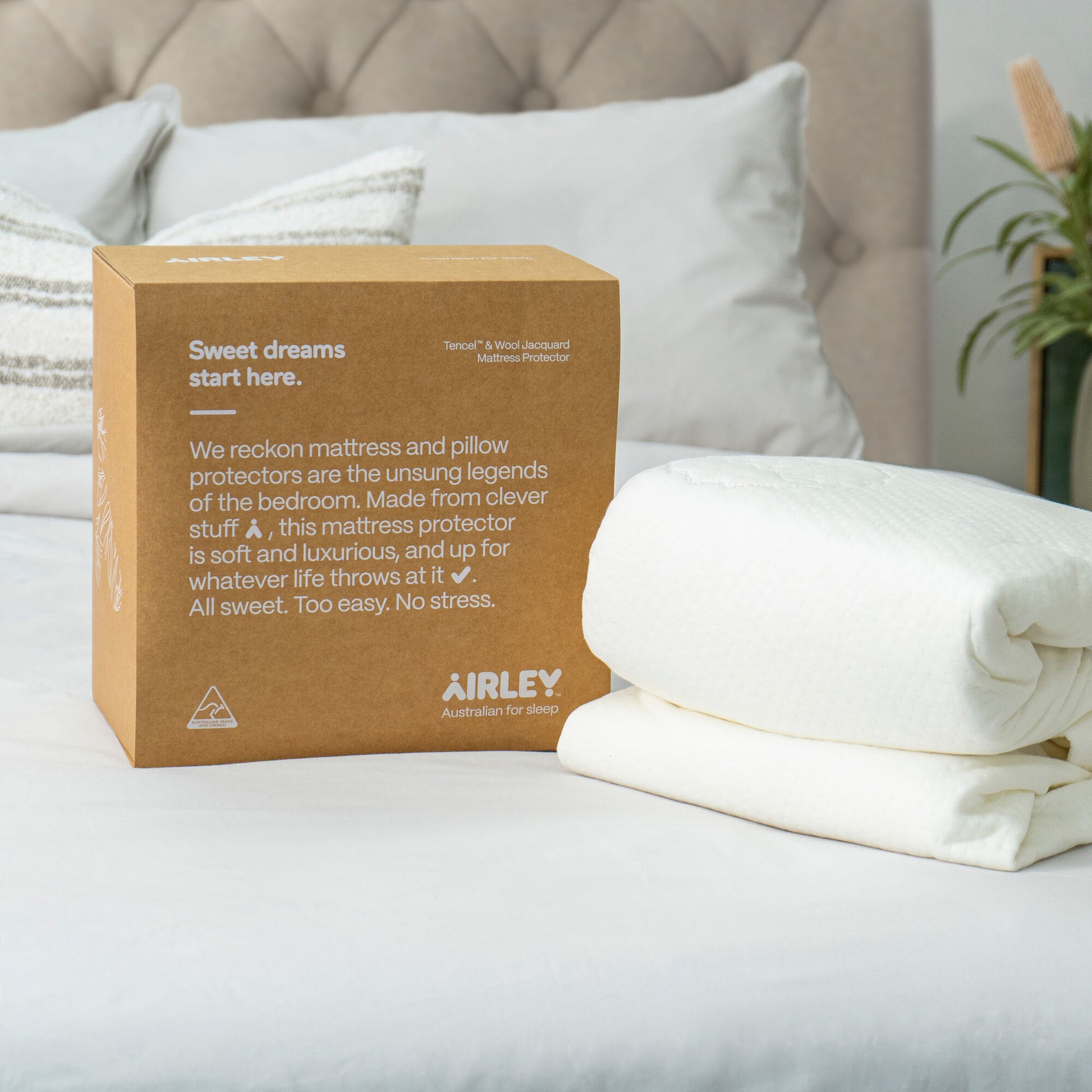 Crafted from natural Australian wool, this protector adds a breathable, insulating layer that helps keep your bed cool in summer and warm in winter. It actively draws moisture away from your body to promote a healthier sleep environment.